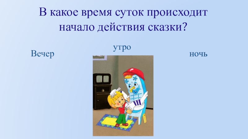 В какое время суток происходит начало действия сказки?Вечерутроночь