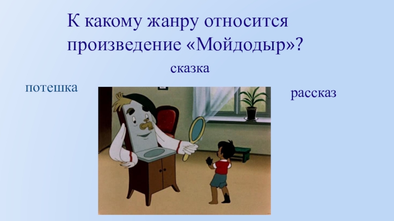 Слайд 7К какому жанру относится произведение «Мойдодыр»?