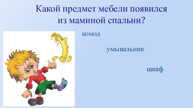 Какой предмет мебели появился из маминой спальни?шкафкомодумывальник