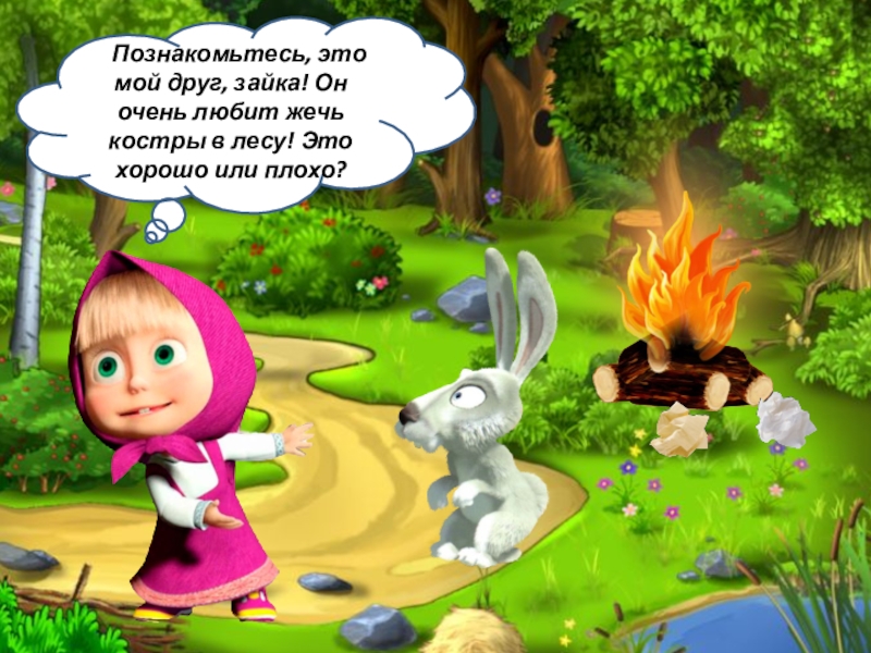 ППознакомьтесь, это мой друг, зайка! Он очень любит жечь костры в лесу! Это хорошо или плохо?