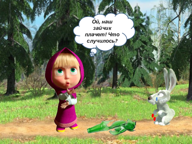 Слайд 21Ой, наш зайчик плачет! Что случилось?