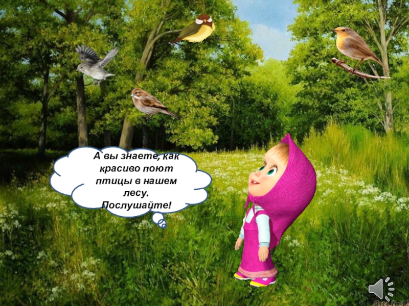А вы знаете, как красиво поют птицы в нашем лесу. Послушайте!