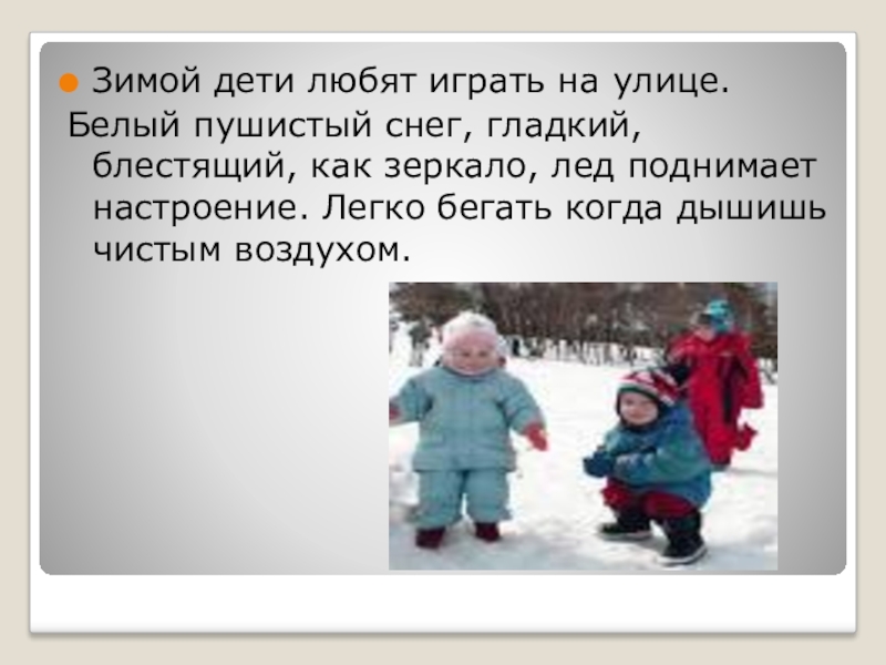 Слайд 9Зимой дети любят играть на улице.