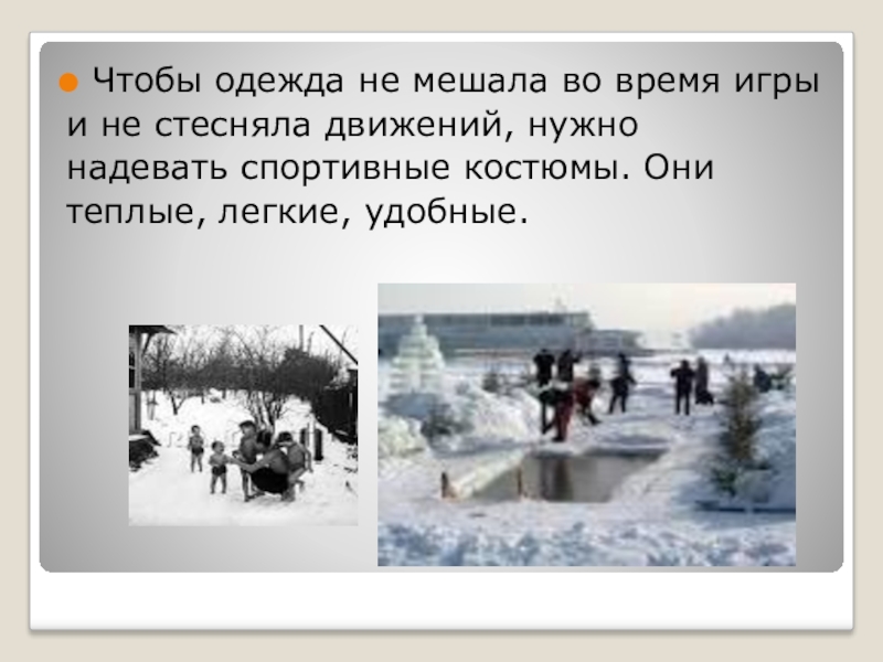 Слайд 10Чтобы одежда не мешала во время игры