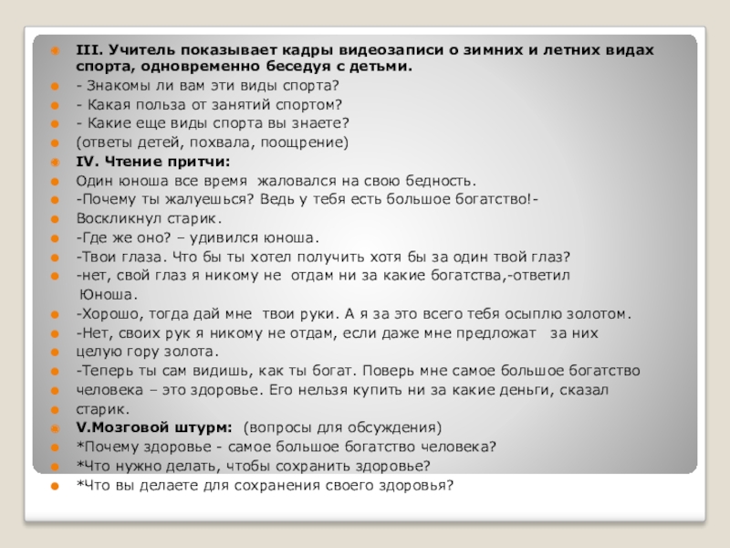 Слайд 3III. Учитель показывает кадры видеозаписи о зимних и летних видах спорта,