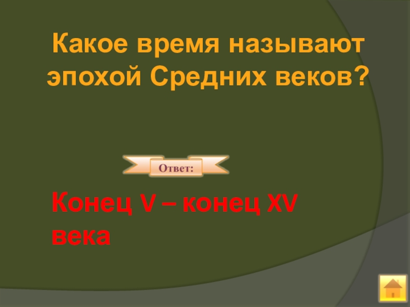 Какое время называют эпохой Средних веков?Конец V – конец XV века