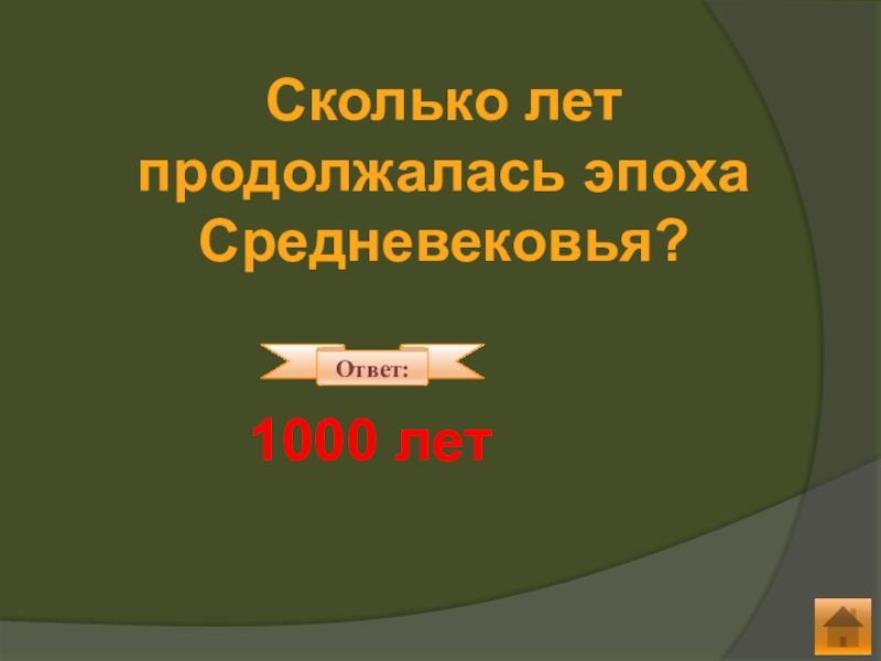 Ответ:Сколько лет продолжалась эпоха Средневековья? 1000 лет