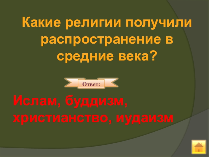 Какие религии получили распространение в средние века? Ислам, буддизм, христианство, иудаизм