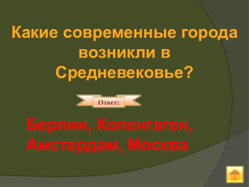 Какие современные города возникли в Средневековье?Берлин, Копенгаген, Амстердам, Москва