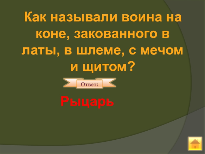 Слайд 6Как называли воина на коне, закованного в латы, в шлеме, с