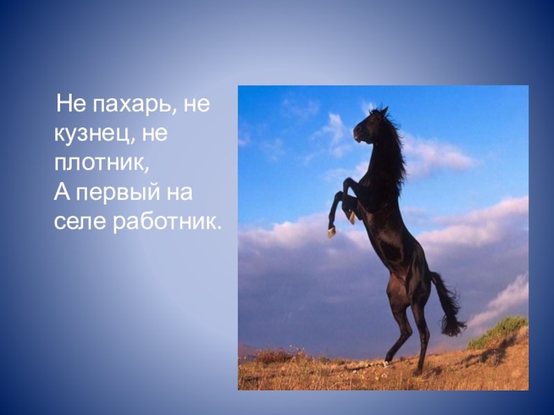 Слайд 4 Не пахарь, не кузнец, не плотник, А первый на селе
