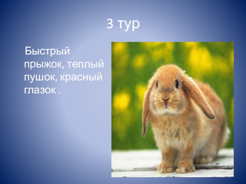 3 тур  Быстрый прыжок, теплый пушок, красный глазок .