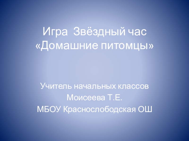 Игра Звёздный час «Домашние питомцы» Учитель начальных классовМоисеева Т.Е.МБОУ Краснослободская ОШ