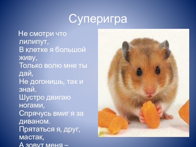 Суперигра  Не смотри что лилипут, В клетке я большой живу, Только волю мне ты дай, Не