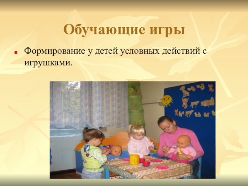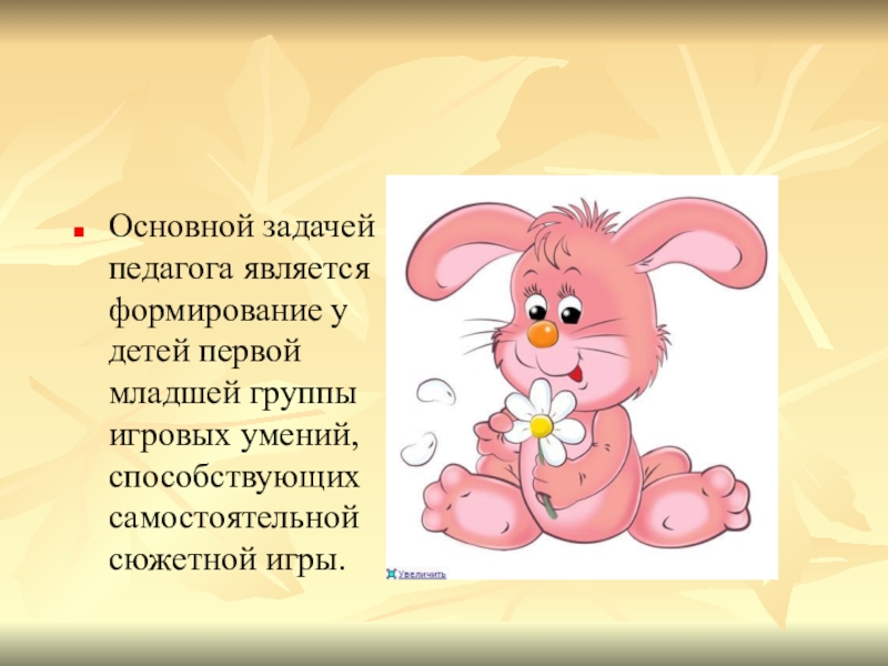 Слайд 5Основной задачей педагога является формирование у детей первой младшей группы игровых