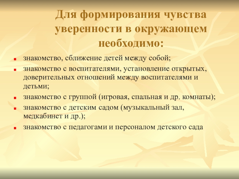 Слайд 28Для формирования чувства уверенности в окружающем необходимо: