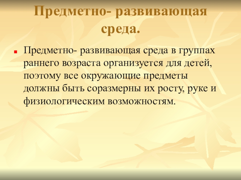 Предметно- развивающая среда в группах раннего возраста организуется для