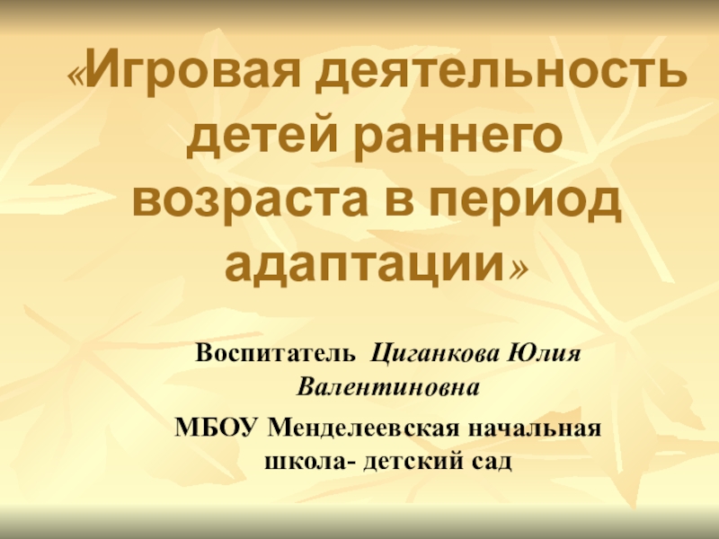 Слайд 1«Игровая деятельность детей раннего возраста в период адаптации»