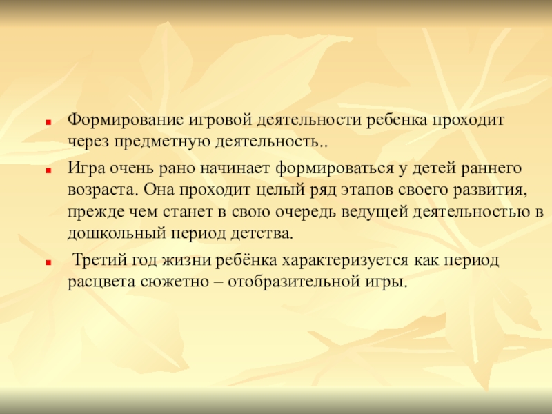 Формирование игровой деятельности ребенка проходит через предметную деятельность..