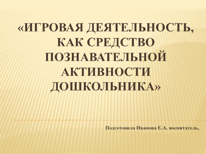 Слайд 1«Игровая деятельность, как средство познавательной активности дошкольника»