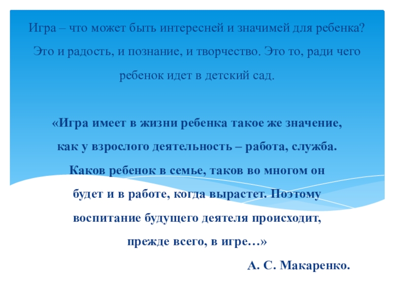 Игра – ведущий вид деятельности в дошкольном возрасте.