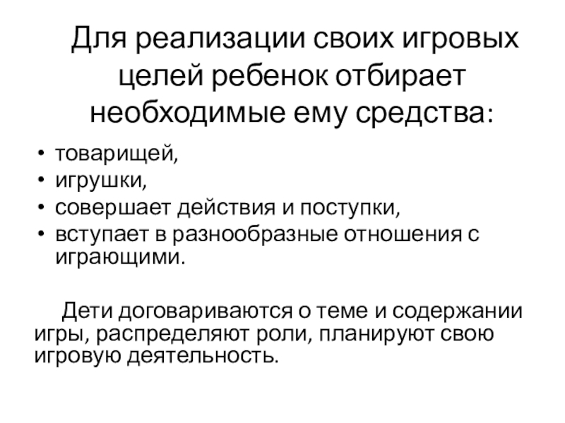 Дети договариваются о теме и содержании игры, распределяют роли, планируют свою игровую деятельность.