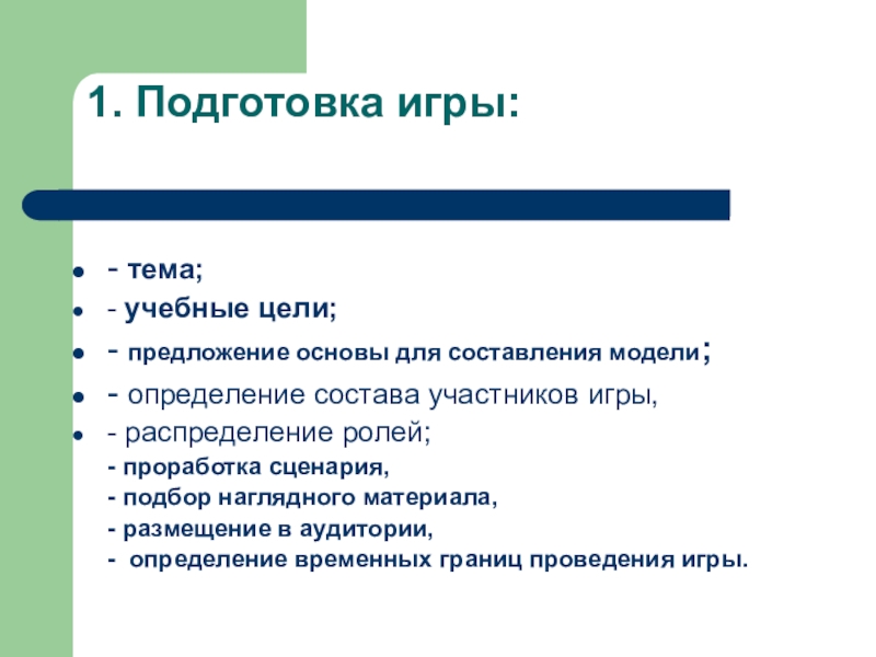 Слайд 161. Подготовка игры: