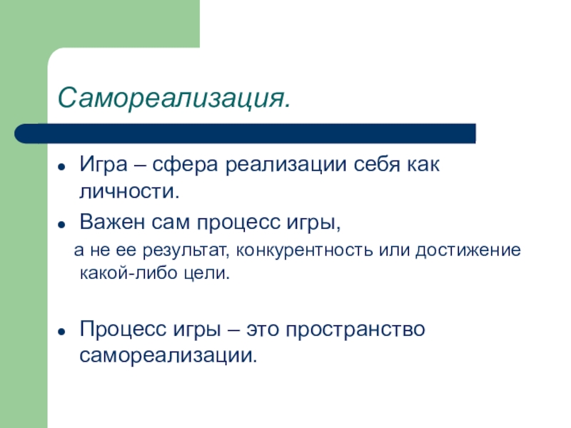 Игра – сфера реализации себя как личности.
