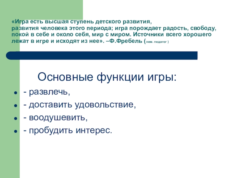 Слайд 4«Игра есть высшая ступень детского развития,