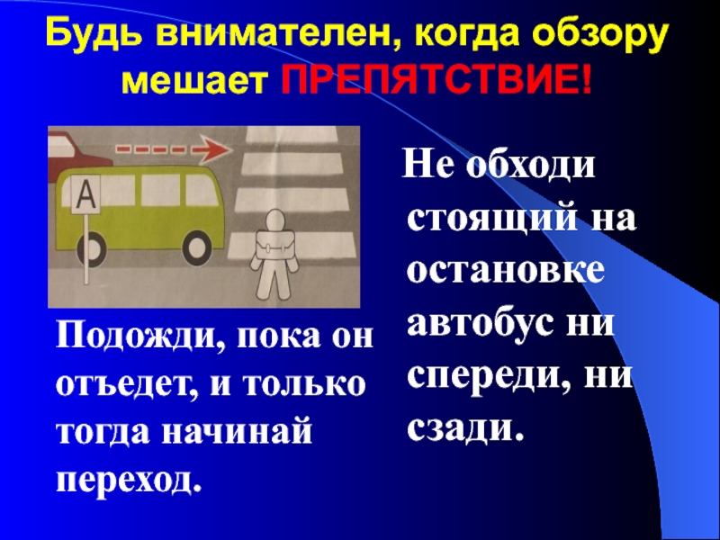 Подожди, пока он отъедет, и только тогда начинай переход.