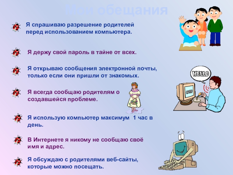 Я спрашиваю разрешение родителей перед использованием компьютера.