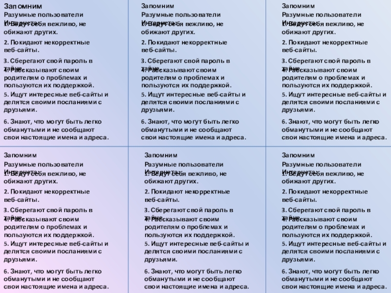 6. Знают, что могут быть легко обманутыми и не сообщают свои настоящие имена и адреса.