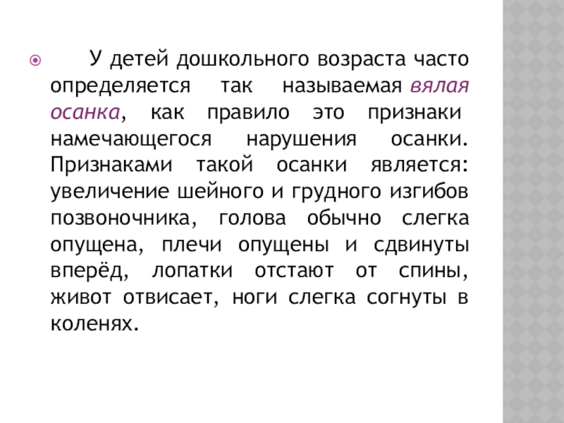 Слайд 6 У детей дошкольного возраста часто определяется так называемая вялая