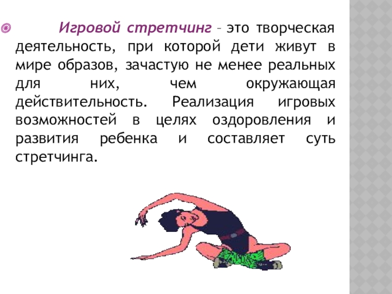 Слайд 4 Игровой стретчинг – это творческая деятельность, при которой дети живут