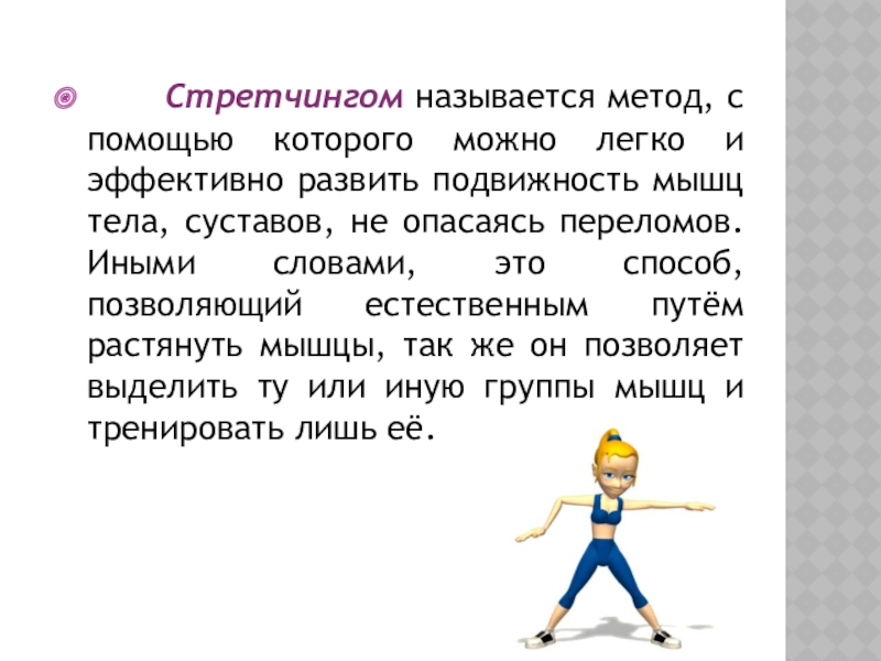 Слайд 3 Стретчингом называется метод, с помощью которого можно легко и