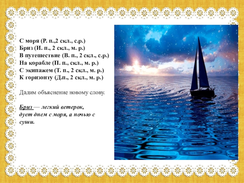 Вперед! Вот уже мы в море Словарных слов и думаем про наше путешествие.