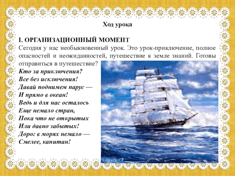 Сегодня у нас необыкновенный урок. Это урок-приключение, полное