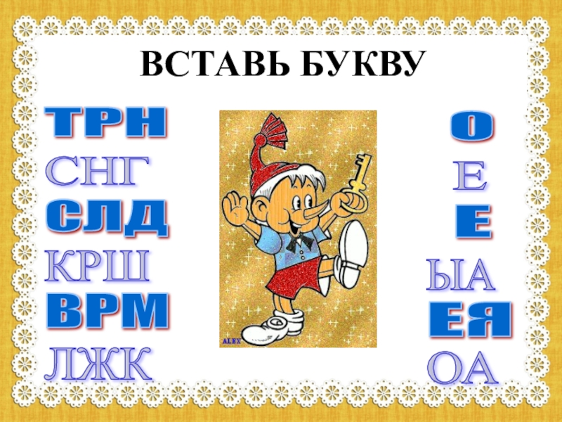 Слайд 27Найди одинаковые группы букв и подчеркни их.