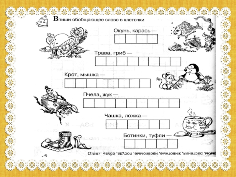 формировать умения выделять и сопоставлять существенные признаки слов - названий предметов;