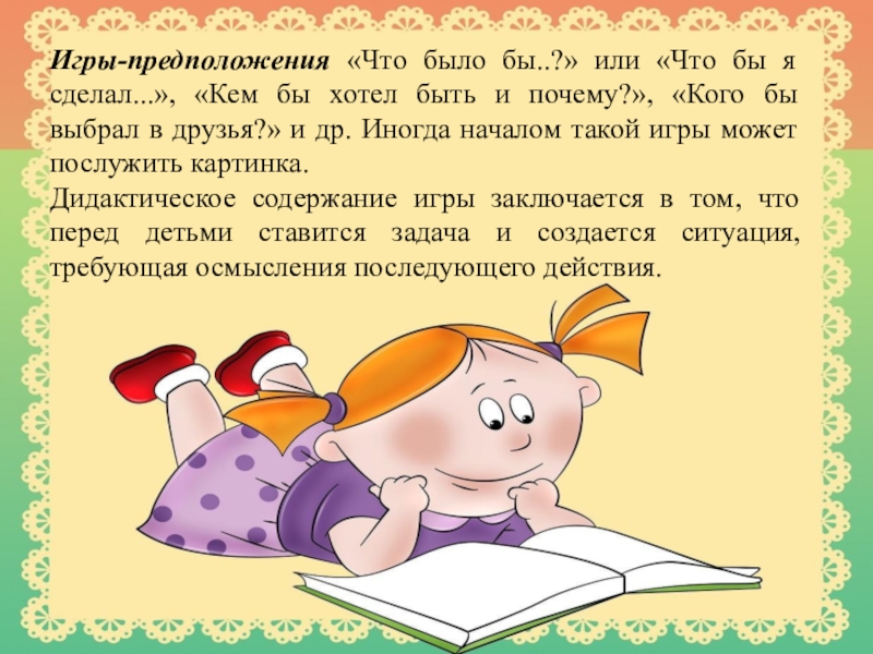 Слайд 20Игры-предположения «Что было бы..?» или «Что бы я сделал...», «Кем бы
