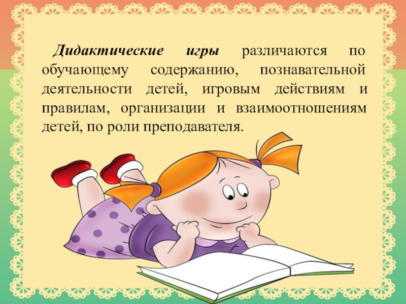 Слайд 2Дидактические игры различаются по обучающему содержанию, познавательной деятельности детей, игровым действиям