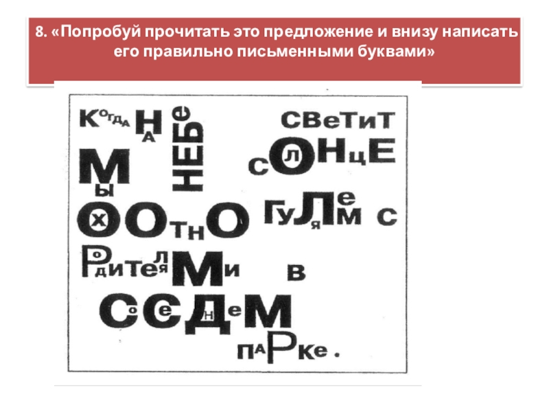 8. «Попробуй прочитать это предложение и внизу написать его правильно письменными буквами»