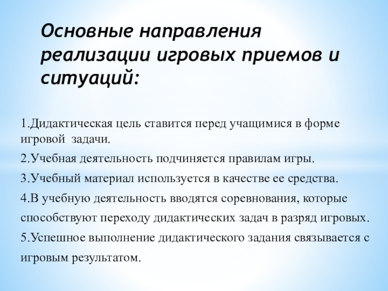 Основные направления реализации игровых приемов и ситуаций: