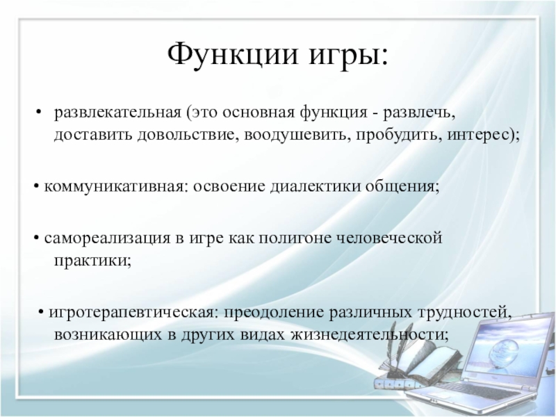 Слайд 31Функции игры: