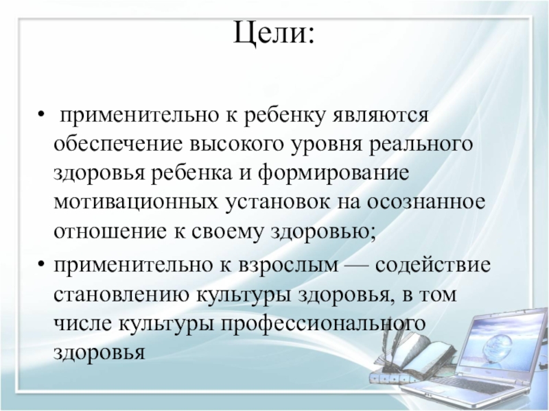 применительно к ребенку являются обеспечение высокого уровня реального здоровья ребенка