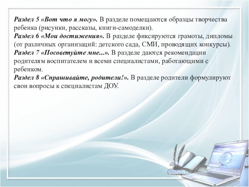 Слайд 26Раздел 5 «Вот что я могу». В разделе помещаются образцы творчества