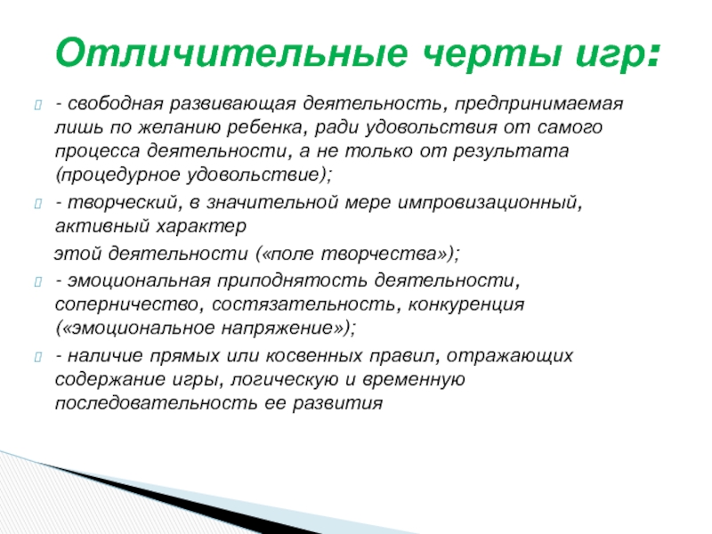 Отличительные черты игр: