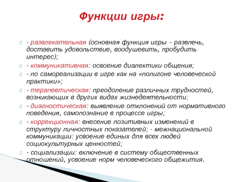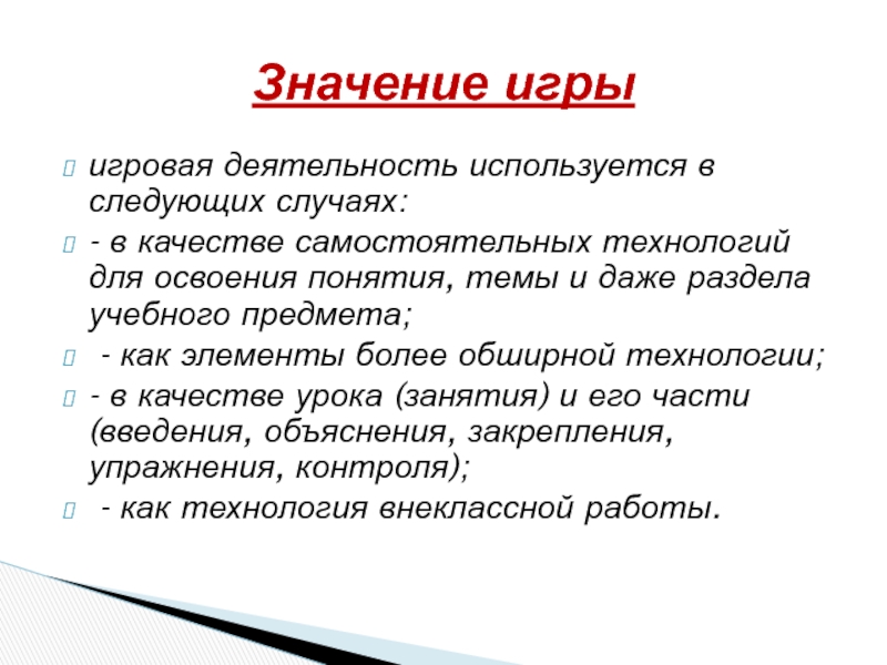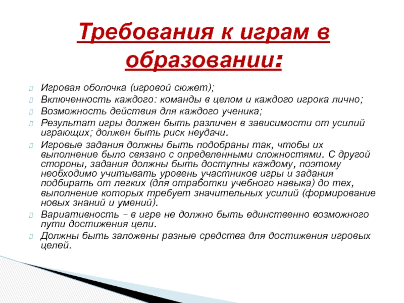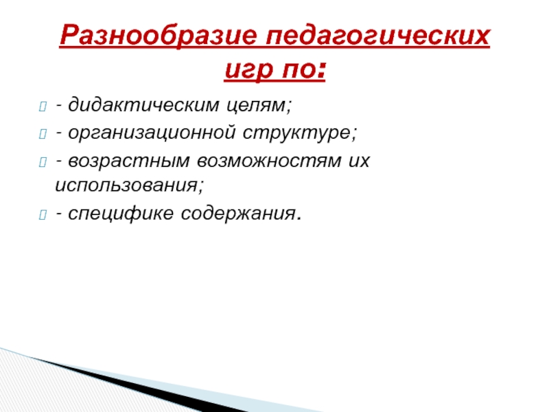 Разнообразие педагогических игр по: