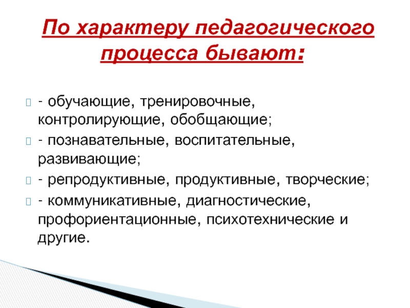 По характеру педагогического процесса бывают: