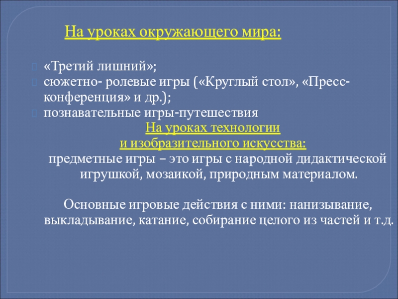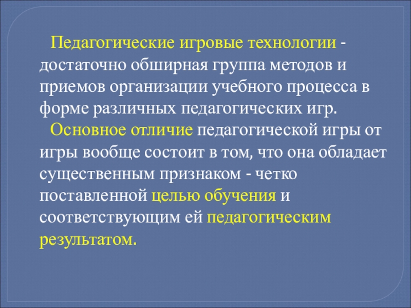 Слайд 4 Педагогические игровые технологии - достаточно обширная группа методов